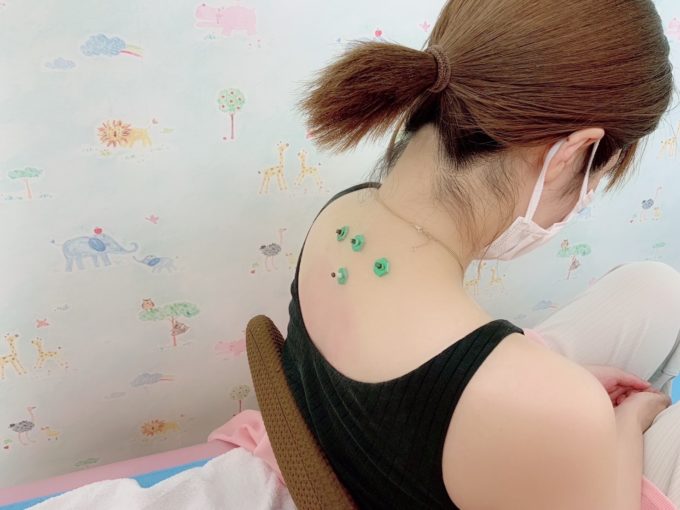 汗の内攻の急処である第5胸椎を中心に第3胸椎・第7頚椎・第1胸椎周囲のツボにお灸をします💁🏻♀️